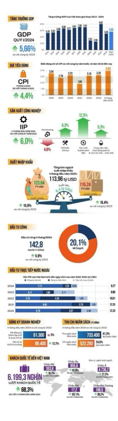 MỘT SỐ CHỈ SỐ THỐNG KÊ KINH TẾ VĨ MÔ 6 THÁNG ĐẦU NĂM 2024